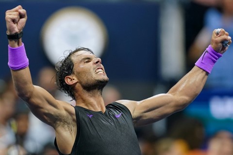 | Rafael Nadal exulte après sa victoire contre Marin Cilic en 8e de finale de l'US Open, le 2 septembre à New York. |