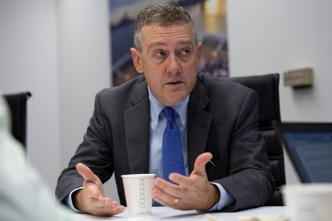| Le président de la Fed de Saint Louis (Missouri), James Bullard, le 6 août lors d'une interview à l'AFP à Washington, DC. |