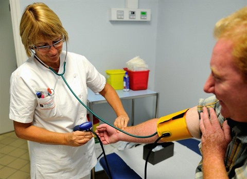 | Une infirmière prend la tension d'un patient, le 20 septembre 2013 dans un hôpital de Lens. |