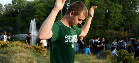 | Un étudiant évacue le campus de l'université de Caroline du Nord, à Charlotte, le 30 avril. |
