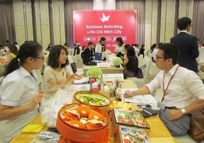 | Des commerçants japonais échangent avec leurs homologues vietnamiens lors du programme «Good Goods Japan». |