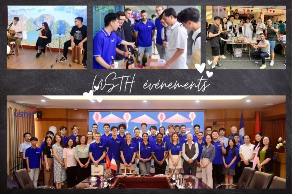 De plus, chaque année, l'USTH accueille de nombreux étudiants français qui viennent étudier ou effectuer des stages d'une durée de 3 à 6 mois. Par conséquent, l'université organise une série d'événements d'échanges culturels tels que le Festival culturel français "Bonjour, France", les Galas "Halley festival" et "Nice to meet U" pour accueillir les étudiants internationaux. Selon Nguyên Tuân Anh, étudiant en 2e année du Département de technologies de l'information et de la communication : "Grâce à ces riches activités culturelles, la communauté franco-vietnamienne de l'USTH a l'opportunité de se retrouver, de partager des expériences gastronomiques à travers les plats typiques de chaque pays, de participer à des expositions de photos présentant de nombreuses informations utiles sur les deux pays, de profiter de la musique, de découvrir la vie étudiante en France et au Vietnam, etc."