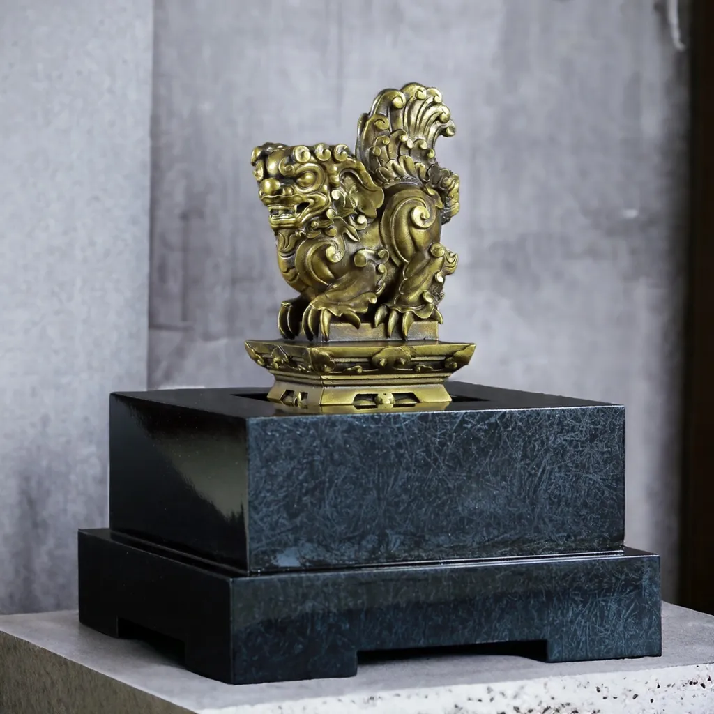 Ce projet a permis la création d’une réplique miniature du Nghê en cuivre, fidèle à celle ornant les colonnes du portail principal du Temple de la Littérature. Cette statue est équipée d’une puce d’identification, semblable à celles utilisées sur les cartes de crédit, garantissant son authenticité.