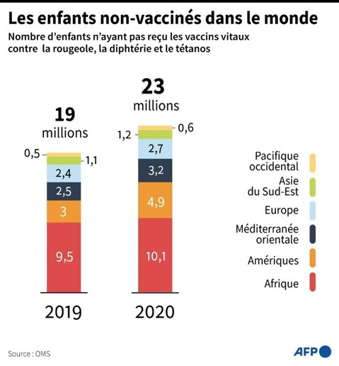 "En 2021, nous avons le potentiel que se produise une catastrophe absolue", a mis en garde la docteure Kate O'Brien, directrice du département Vaccination à l'Organisation mondiale de la santé à Genève. La pandémie a forcé à détourner ressources et personnels vers la lutte contre le COVID, nombre de services de soins ont dû fermer ou réduire leurs horaires. Les gens ont aussi été réticents à se déplacer de crainte de se contaminer, quand les mesures de confinement ne le leur interdisaient pas.