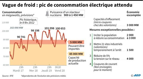 Il pourrait cependant être contraint de déclencher dès mardi 17 janvier des mesures exceptionnelles, comme d'encourager les consommateurs à réduire leur consommation pendant les heures de pointe.