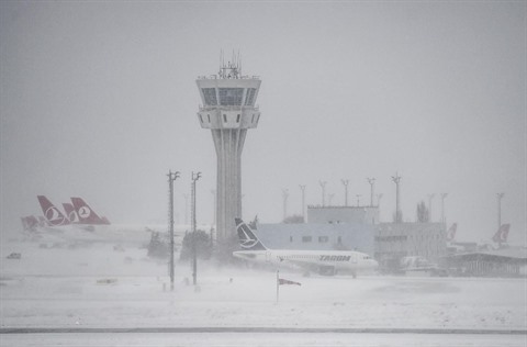 | L’Aéroport Ataturk international d’Istanbul sous la neige, le 7 janvier 2017. |