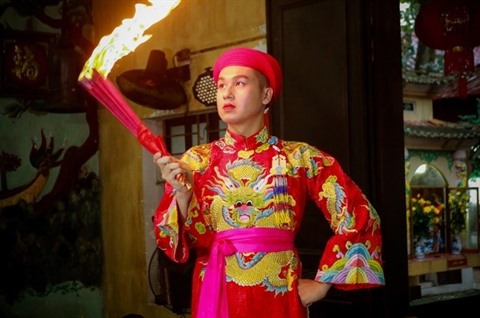 | Un chaman interprète la scène de l’incarnation «Quan Dê ngu» (5e Grand Mandarin). |