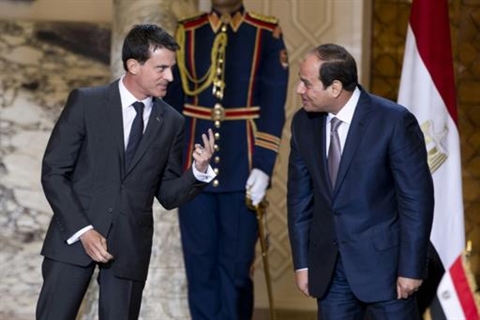 | Le Premier ministre français Manuel Valls et le président égyptien Abdel Fattah al-Sissi, le 10 octobre au Caire |