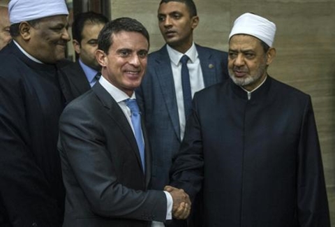 | Le Premier ministre français avec le Grand Imam égyptien d'al-Azhar, Sheikh Ahmed al-Tayeb, le 11 octobre au Caire. |