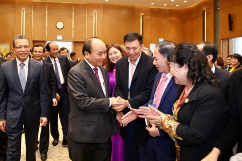 | Le PM Nguyên Xuân Phuc à la rencontre des "Viêt kiêu" revenus au pays pour participer au Programme "Le printemps dans mon pays ancestral 2020". |