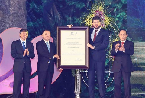 | Cérémonie de remise du certificat de l'UNESCO inscrivant le géoparc de Non Nuoc Cao Bang au Réseau mondial des géoparcs. |