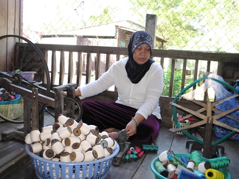 | Métier traditionnel de tissage des Chăm d'An Giang. |