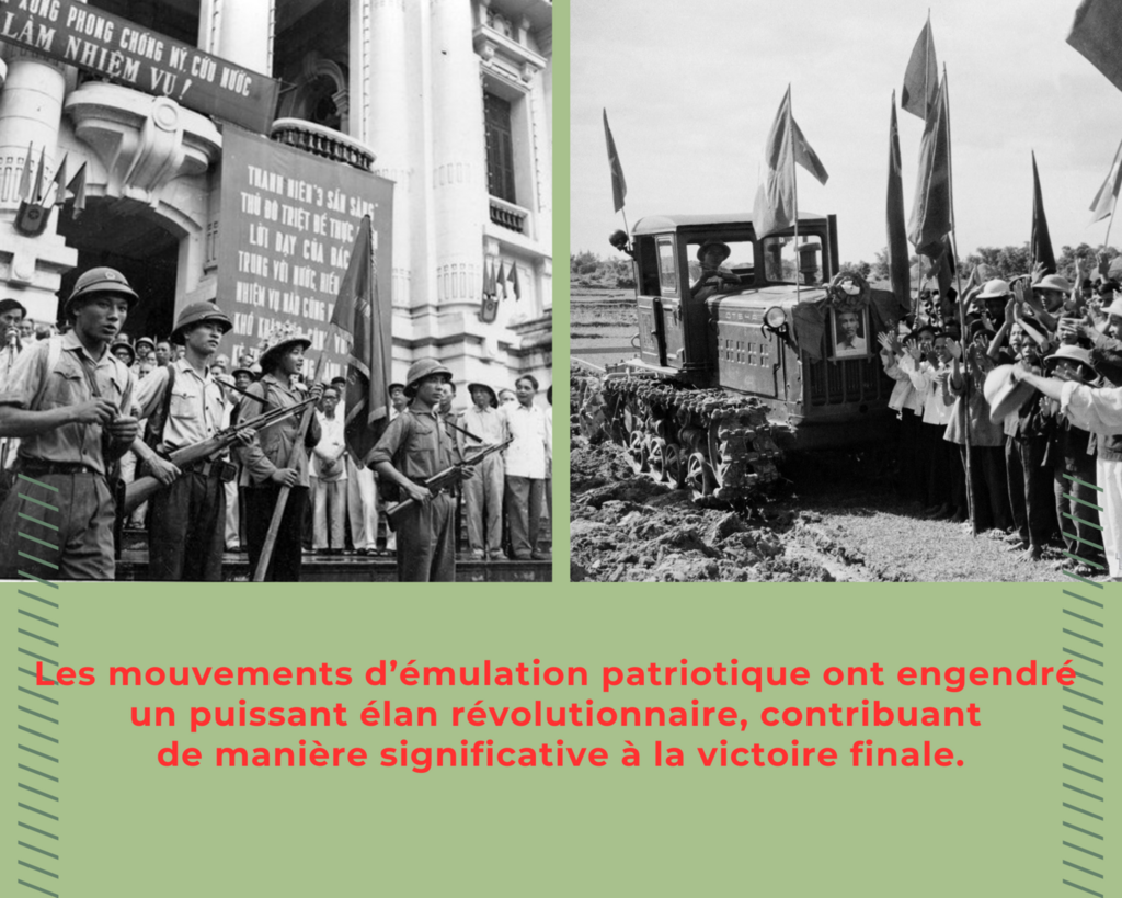 Dans chaque phase de la révolution, sous la direction du Parti, les mouvements d’émulation patriotique ont toujours joué un rôle crucial dans la stimulation, l'unification et la mobilisation des populations et des soldats à travers le pays pour qu'ils rassemblent toutes leurs forces dans la lutte pour l'indépendance et la construction du pays.