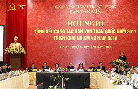 En 2017, le secteur de la sensibilisation auprès des masses a atteint des résultats positifs en s’intéressant à sensibiliser le peuple à l'accomplissement de ses devoirs socio-économiques, à appliquer pleinement les politiques de bien-être social, à soutenir les habitants dans le règlement des dégâts des catastrophes naturelles pour reprendre la production et une vie normale, à accélérer la réforme administrative, à appliquer le mécanisme démocratique de base ainsi qu'au travail de sensibilisation auprès des masses dans les régions où vivent des ethnies minoritaires et pratiquants religieux, etc.
