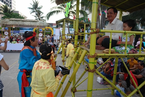 | Le jeu du chant populaire de Bai Choi, typique de Binh Dinh. |