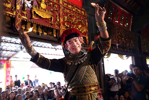 | Le shaman interprète le "hâu dông", un ritue très spécial du culte des déesses-mères. |