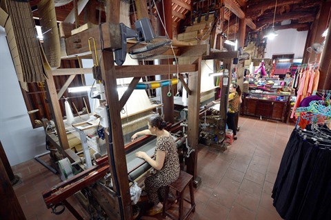 | Dans un atelier de tissage des soies du village de Van Phuc. |