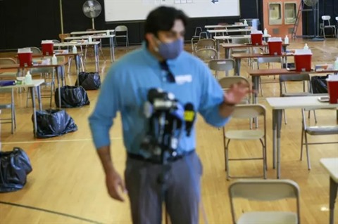 | Conférence de presse de lancement du centre de vaccination contre la vriole du singe à New York, le 17 juillet. |