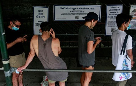 | Queue d'un centre de vaccination contre la variole du singe à Brooklyn, le 17 juillet à New York. |