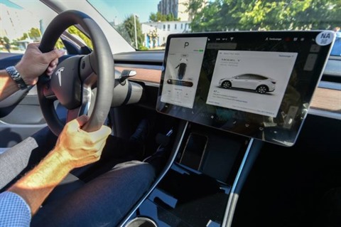 | À l'intérieur du Model Y de Tesla, le 5 septembre à Budapest. |