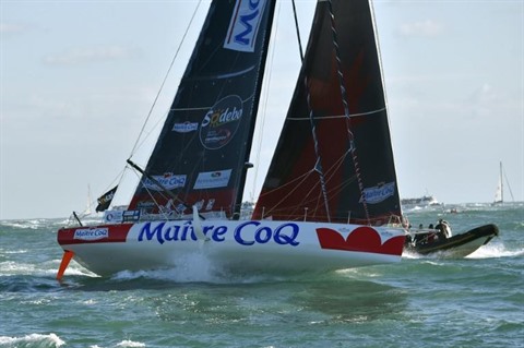 | Jérémie Beyou (Maitre Coq), le 6 novembre 2016 au large des Sables d'Olonne après le départ du Vendée Globe. |
