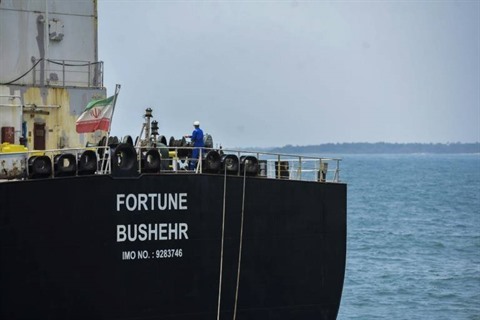 | Le pétrolier iranien "Fortune" à la raffinerie d'El Palito, au Venezuela, le 25 mai. |