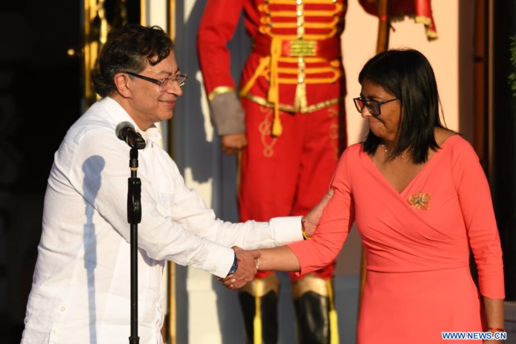 | La présidente par intérim du Venezuela, Delcy Rodriguez, et le président colombien Gustavo Petro. |