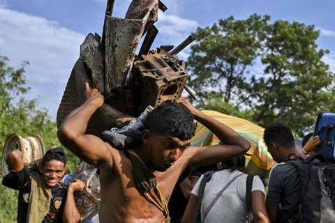 | Des commerçants clandestins en provenance du Venezuela traversent la frontière colombienne près de Cucuta, le 3 mai 2019. |