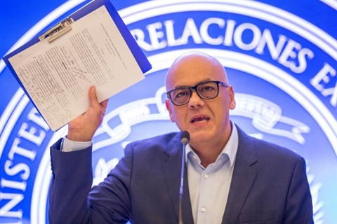 Jorge Rodriguez, principal négociateur du gouvernement vénézuélien, montre le brouillon de l'accord des négociations entre le gouvernement et l'opposition, le 18 janvier 2018 à Saint-Domingue, en République Dominicaine. Photo : AFP/VNA/CVN |
