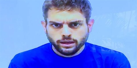 | Dans la vidéo du député diffusée par les autorités, Juan Requesens apparaît en t-shirt bleu, assis, face caméra. |