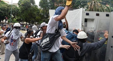 | Affrontements entre manifestants de l'opposition et les forces de l'ordre à Caracas, au Venezuela, le 3 juin 2017. |