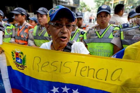 | Un membre de l'opposition au président Nicolas Maduro porte un drapeau lors d'une manifestation le 10 novembre à Caracas. Photo : AFP/VNA/CVN |