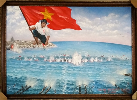 «Le récif de Gac Ma, le cercle immortel» est une huile de Bùi Lê Trang de 1,6 m par 2,2 m. La communauté des anciens étudiants de l’Institut des technologies d’Asie au Vietnam (AITA-VN) a avancé le prix de 300 millions de dôngs avec le souhait d’offrir cette œuvre à l’Armée populaire du Vietnam.