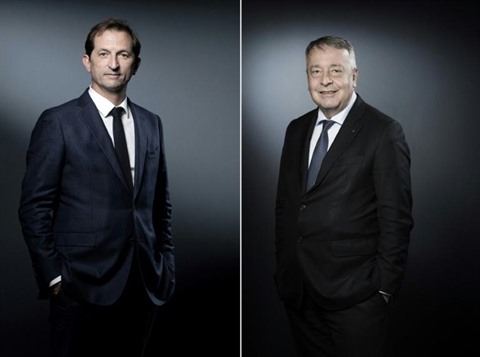 | Antoine Frérot (droite), PDG de Veolia, et Bertrand Camus, directeur général de Suez. |