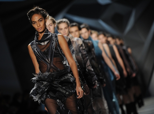 | Des modèles de la styliste Vera Wang présentés le 14 février lors de la semaine de la mode de New York. |