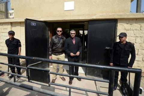 | Deux des trois journaliste à la sortie du tribunal le 8 mars 2015 au Caire. |