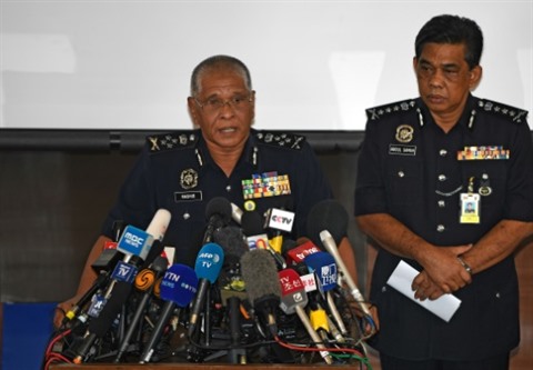 | Les chefs de la police malaisienne Noor Rashid Ibrahim et Abdul Samah Mat lors d'une conférence de presse le 19 février 2017 à Kuala Lumpur. |