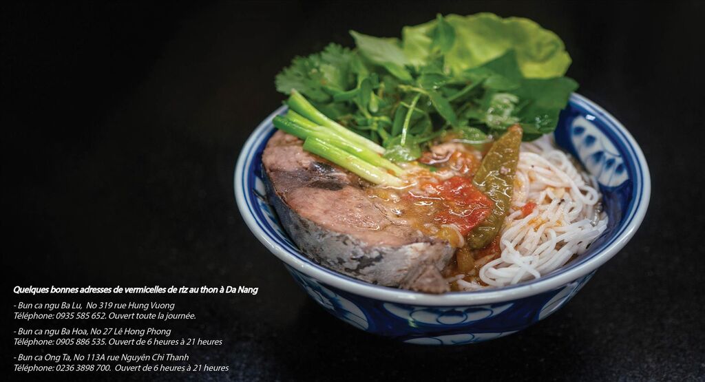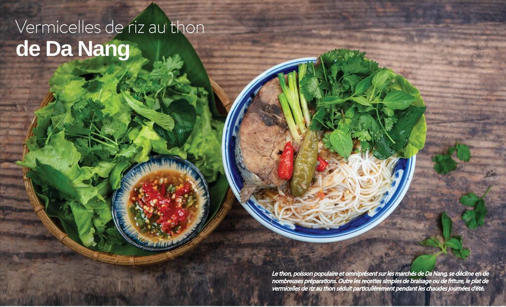 | De la mer à l’assiette, la fraîcheur du thon et la délicatesse des vermicelles se rencontrent dans cette spécialité de Dà Nang. |