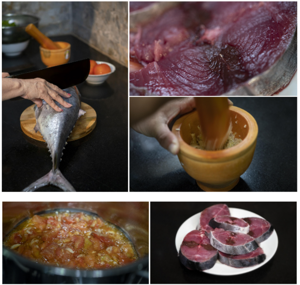 La préparation de cette spécialité locale est relativement simple. Après avoir nettoyé le poisson, on le découpe en tranches, on l’assaisonne légèrement, puis on le fait rapidement dorer. L’ananas et les tomates, coupés en tranches, sont ensuite sautés dans une poêle jusqu’à ce qu’ils soient bien cuits. On assaisonne selon son goût, ajoute de l’eau et porte à ébullition.