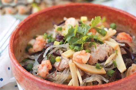 - Faire revenir les môc nhi et les pousses de bambou dans l’huile.