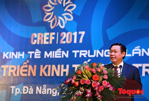 | Le vice-Premier ministre Vuong Dinh Huê, lors du Forum économique du Centre 2017, le 25 septembre, à Dà Nang. |