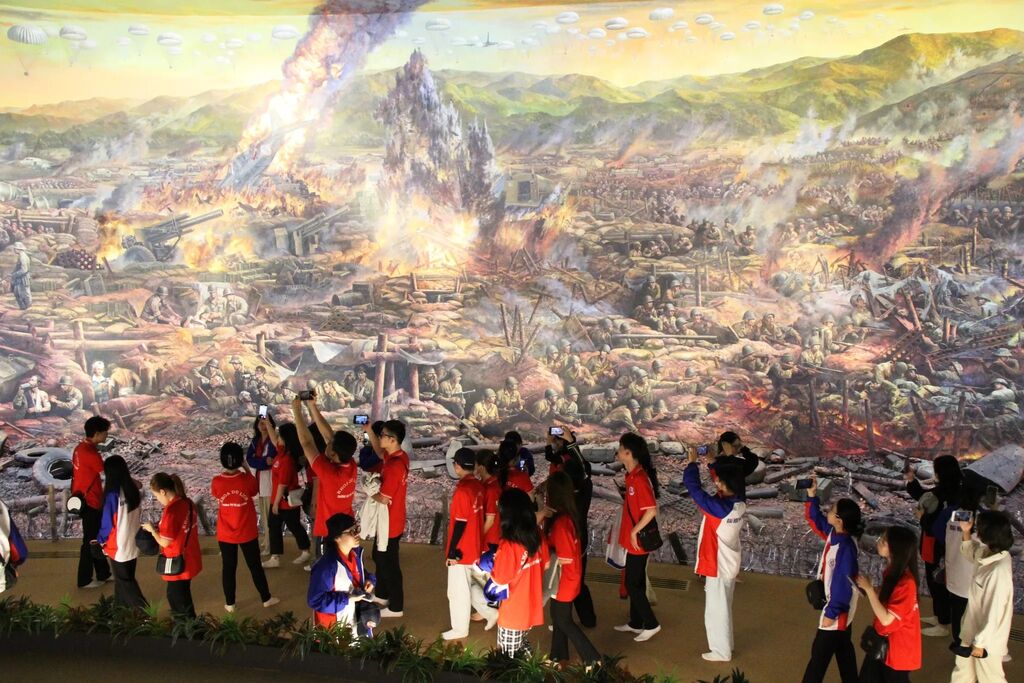 | Les visiteurs admirent le tableau panoramique de la campagne de Diên Biên Phu au Musée de la victoire historique de Diên Biên Phu, province de Diên Biên. |
