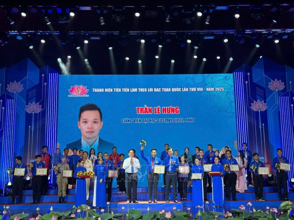 | Trân Lê Hung, un des jeunes intellectuels vietnamiens résidant en France, est félicité à la cérémonie nationale honorant les jeunes exemplaires suivant les enseignements de l’Oncle Hô (Président Hô Chi Minh), le 17 mai 2025 à Hô Chi Minh-Ville. |