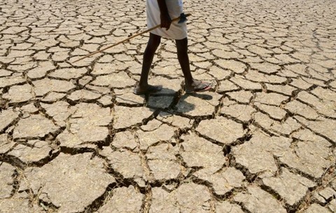 | Un fermier marche dans ce qui était son champ de coton à Chandampet Mandal, à l'est d'Hyderabad (sud de l'Inde), le 25 avril 2016. |