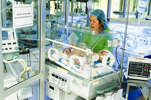 | Soins médicaux donnés à un nouveau-né dans l’Hôpital central gynécologie-obstétrique de Hanoi. |