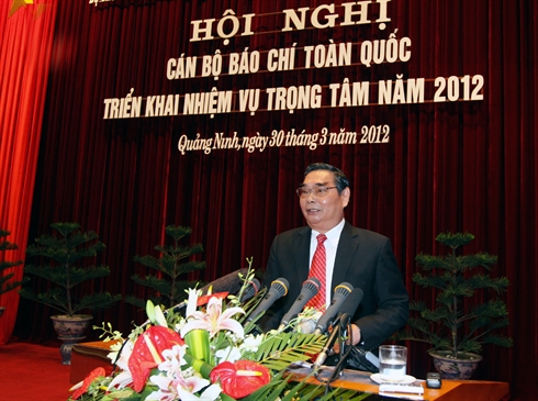 | Lê Hông Anh, membre du politburo et permanent du secrétariat du PCV, s'adresse aux journalistes lors de la conféfence, le 30 mars à Quang Ninh. |