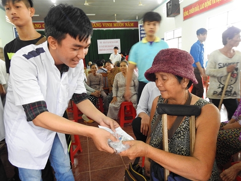 | Soins médicaux donnés à des personnes âgées en situation difficile à Hanoï. |