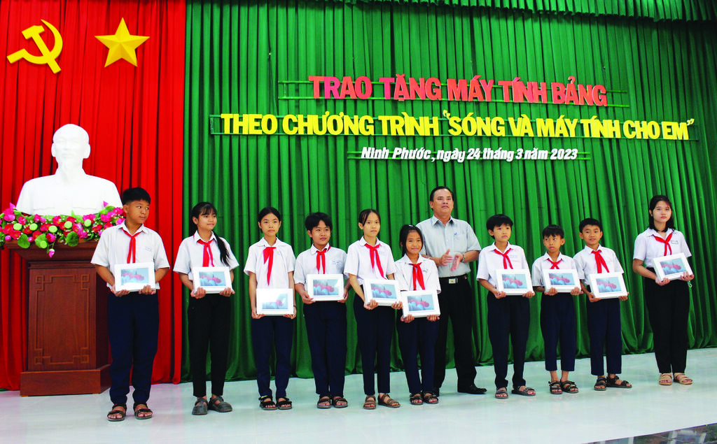 | Remise de tablettes aux meilleurs élèves du district de Ninh Phuoc, province de Ninh Thuân (Centre). |