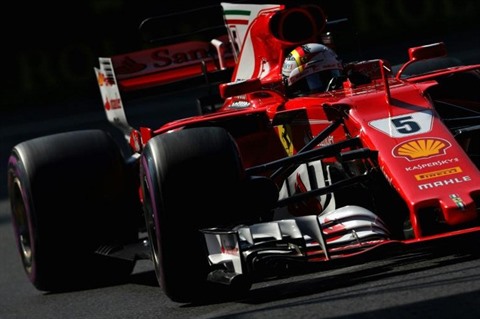 | L'Allemand Sebastian Vettel (Ferrari) lors des des qualifications pour le Grand Prix du Mexique, le 28 octobre 2017 à Mexico City. |