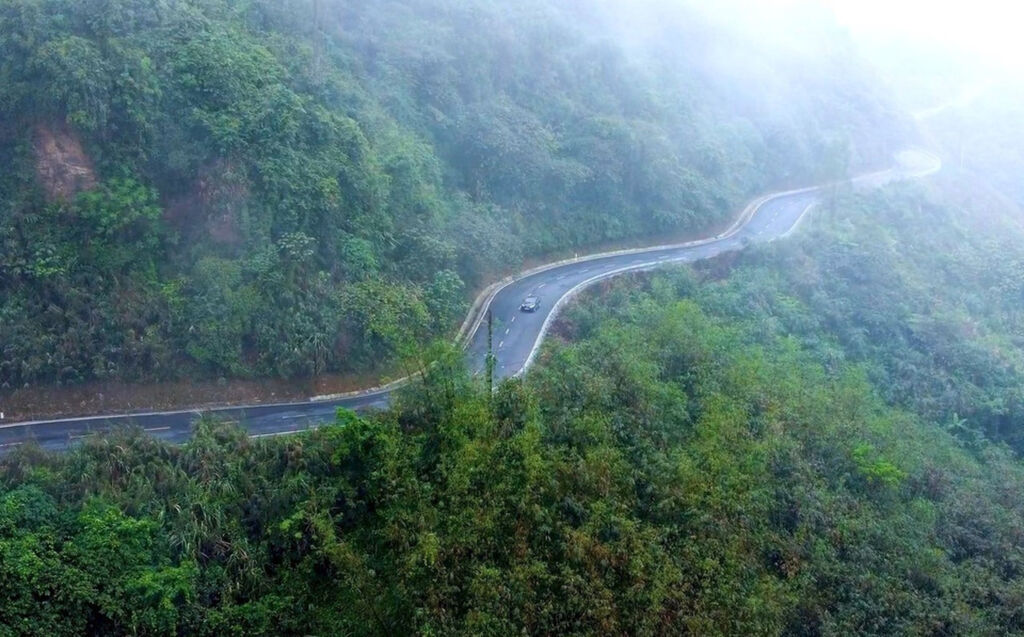 | Une route moderne traversant le légendaire col de Lung Lô, un site célèbre de la campagne de Diên Biên Phu. |